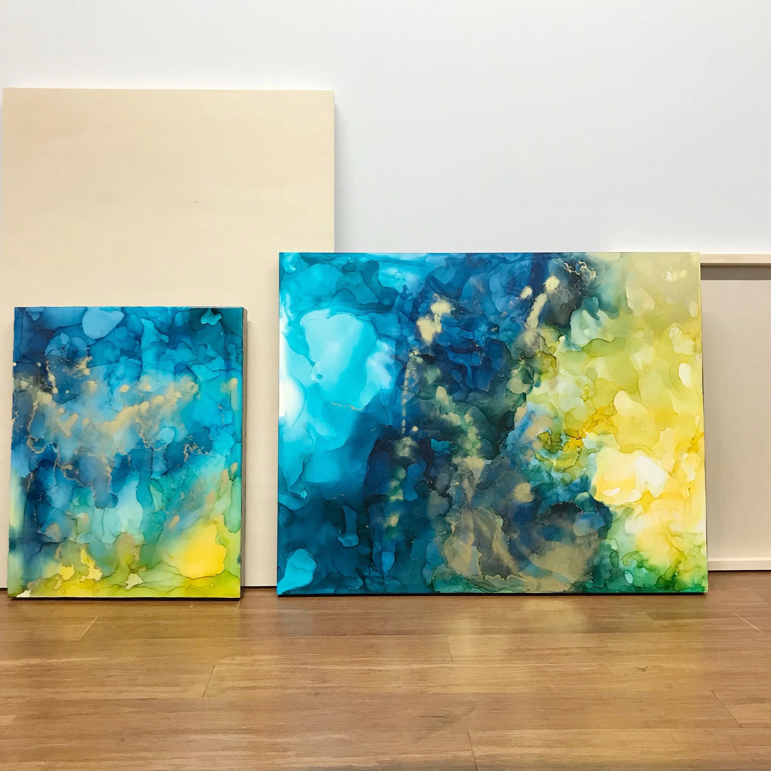 Plunge Pool - 16 x 20 & 11 x 14 ink and resin on claybord